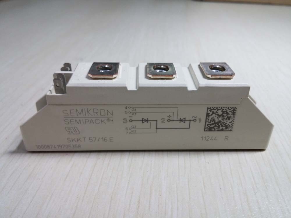具體型號如下:SKKT27/16E SKKT57/16E SKKT106/16E SKKT162/16E SKKT250/16E SKKT273/16E SKKT323/16E SKKT330/16E SKKT460/16E SKKT570/16E 。可控硅通俗來說就是2只可控的整流管,沒解發時等效于開路,通過脈沖變壓器整流后觸發等效于二極管。可控硅是靠電流觸發的。