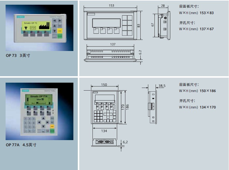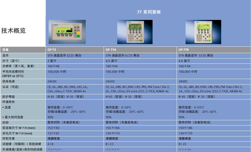能夠有效的操作和監控不同性能設備,既有帶觸摸 屏的觸摸式面板(TP),又有帶覆膜鍵盤的操作面 板(OP)。
